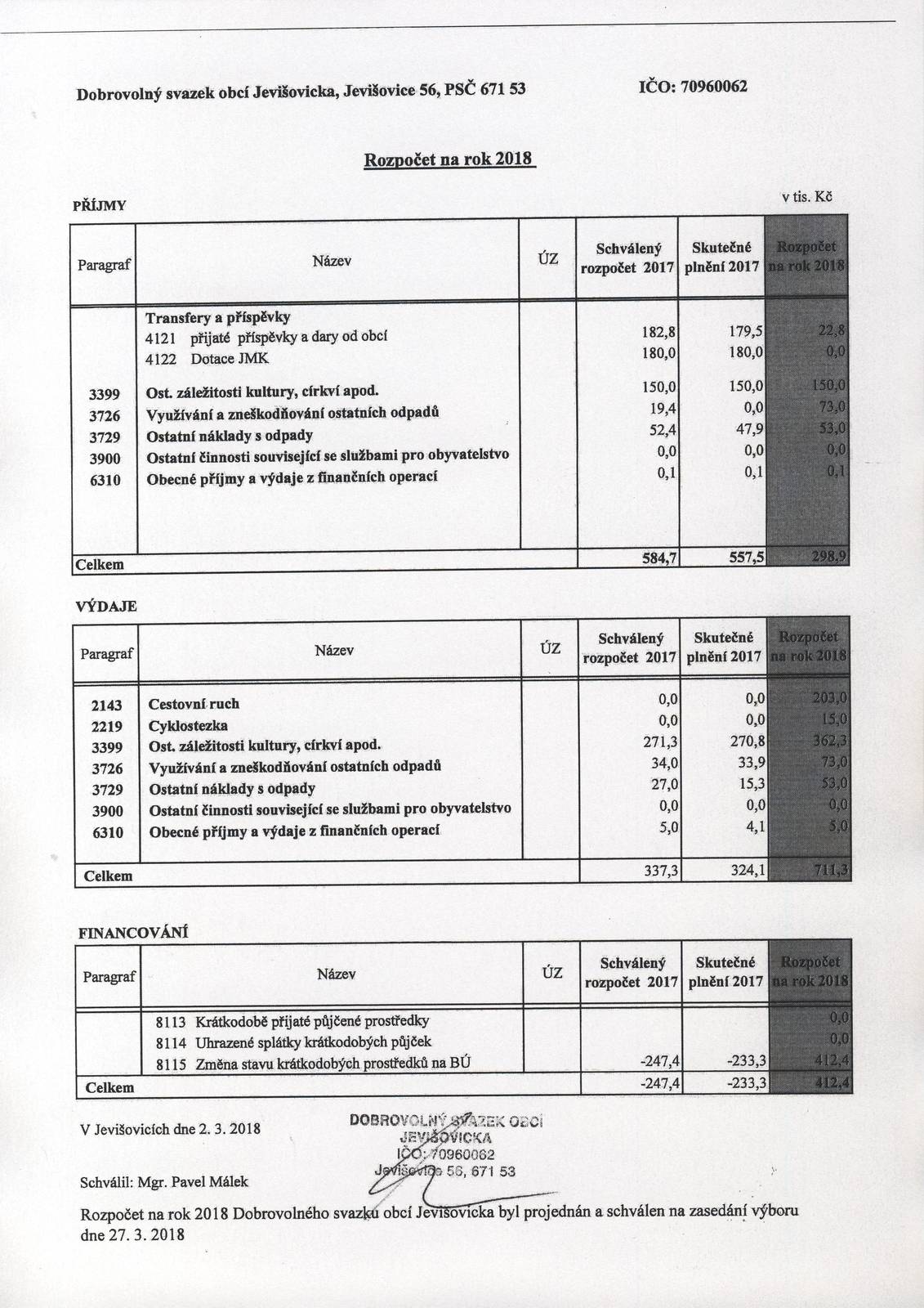 Rozpočet 2018, DSO Jevišovicka.JPG