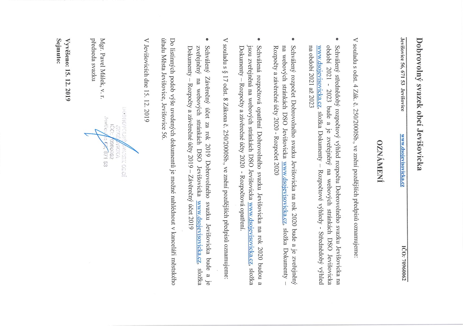 Oznámení o zveřejnění dokumentů rozpočtového hospodaření DSO Jevišovicka.jpg